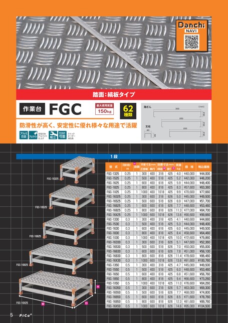 35.235.235.2(mm)300250200踏ざん26支柱40作業台FGC踏面:縞板タイプ最大使用質量150kg62種類防滑性が高く、安定性に優れ様々な用途で活躍AEFMクイック支柱のみアルマイト仕上げオーダー対応品1段型式FGC-1325FGC-1525FGC-1625FGC-1825FGC-1X25FGC-16325FGC-16525FGC-16625FGC-16825FGC-16X25FGC-1330FGC-1530FGC-1630FGC-1830FGC-1X30FGC-16330FGC-16530FGC-16630FGC-16830FGC-16X30FGC-1350FGC-1550FGC-1650FGC-1850FGC-1X50FGC-16350FGC-16550FGC-16650FGC-16850FGC-16X50天板の高さmH段数0.250.250.250.250.250.250.250.250.250.250.30.30.30.30.30.30.30.30.30.30.50.50.50.50.50.50.50.50.50.5111111111111111111111111111111天板寸法mm奥行正面幅400300400500600400400800400100060030060050060060060080060010004003005004004006004008004001000300600600500600600600800100060040030040050040060080040040010006003006005006006008006006001000設置寸法mmDW昇降面318518618818101831851861881810183185186188181018318518618818101831851861881810183185186188181018奥行425425425425425626626626626626425425425425425626626626626626425425425425425626626626626626質量kg4.05.25.98.39.95.06.97.711.313.64.15.36.08.410.05.17.07.811.413.64.76.06.89.411.05.77.78.512.314.6価格税込価格¥40,000¥42,000¥44,000¥57,600¥70,600¥45,000¥47,000¥48,600¥77,000¥90,600¥40,600¥44,000¥45,000¥58,600¥72,600¥47,600¥50,000¥51,000¥78,600¥91,600¥45,000¥48,600¥51,600¥66,600¥76,600¥63,000¥68,000¥71,600¥81,600¥95,000¥44,000¥46,200¥48,400¥63,360¥77,660¥49,500¥51,700¥53,460¥84,700¥99,660¥44,660¥48,400¥49,500¥64,460¥79,860¥52,360¥55,000¥56,100¥86,460¥100,760¥49,500¥53,460¥56,760¥73,260¥84,260¥69,300¥74,800¥78,760¥89,760¥104,500HFGC-16325FGC-16525FGC-16625FGC-16825FGC-16X25WD5