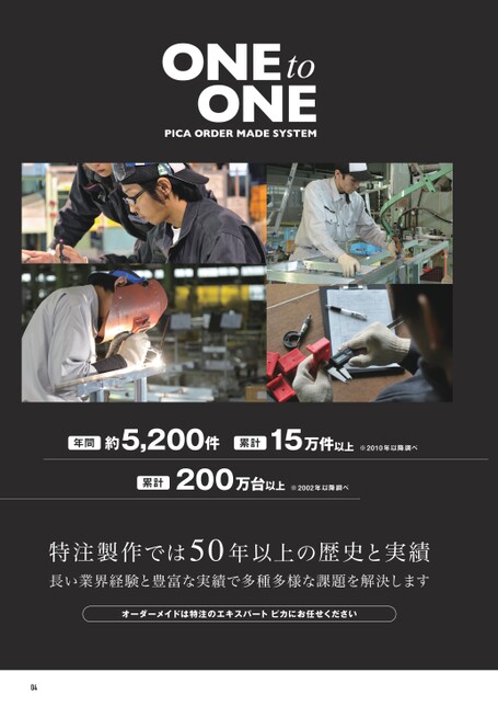 年間約5,200件累計15万件以上累計200万台以上※2002年以降調べ※2010年以降調べ特注製作では50年以上の歴史と実績長い業界経験と豊富な実績で多種多様な課題を解決しますオーダーメイドは特注のエキスパートピカにお任せください04